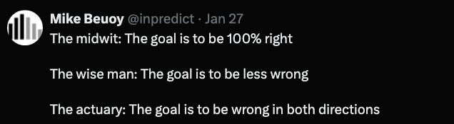 Most people want the rating systems to be 100% right, while wiser folks know the goal is to be less wrong, and the most skilled know the goal is to be symmetrically wrong.