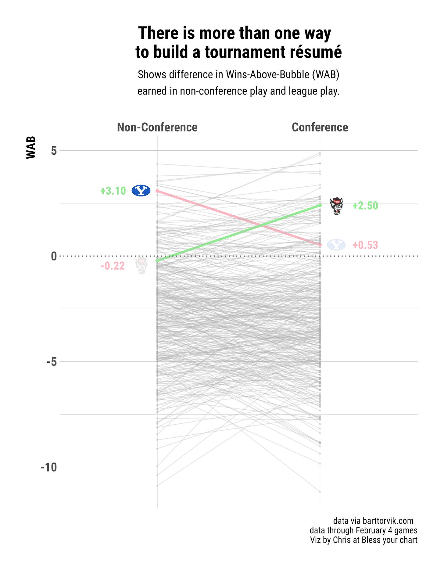 The Wolfpack has built its entire NCAA tournament résumé over its past 10 games with an 8-2 record in ACC play. Meanwhile, the Cougars are 5-4 in Big 12 play and relying on their strong non-conference record to buoy their tourney résumé.