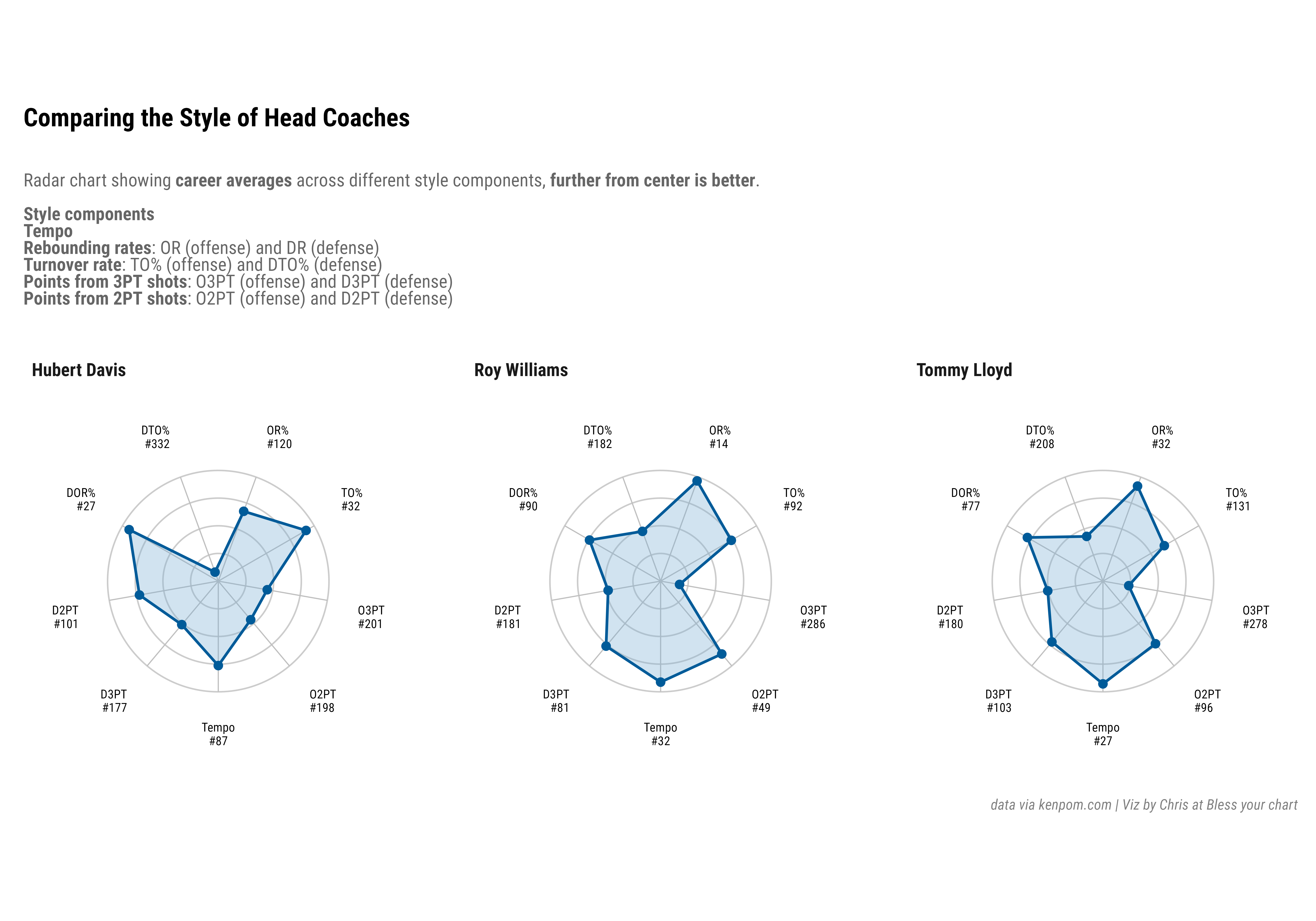 Anyhow, here is a radar plot comparing the style of play of the last two Carolina coaches and Lloyd, and why some fans were clamoring for Lloyd.